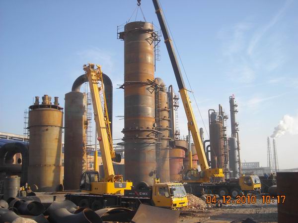 內(nèi)蒙古齊華礦業(yè)有限責(zé)任公司二期復(fù)合肥配套8萬噸合成氨項(xiàng)目,是入內(nèi)蒙不到兩年的內(nèi)蒙古分公司承接的第一個(gè)大化肥項(xiàng)目。最初的合同價(jià)是1000萬左右,經(jīng)過分公司領(lǐng)導(dǎo)的不懈努力和現(xiàn)場(chǎng)的突岀表現(xiàn),業(yè)主最終把包括造氣、脫硫、脫碳、變換、精脫、壓縮、醇烴化、氨合成、冷凍、循環(huán)水等幾乎全廠所有工段的安裝工作都交給了我方,估計(jì)最終的建安工作量將突破3500萬。由于該項(xiàng)目90%以上的設(shè)備都屬于“拆舊用舊”,因此施工難度很大。施工人員在正常安裝之前,需要對(duì)舊設(shè)備進(jìn)行檢測(cè)和修護(hù),還要?jiǎng)兂O(shè)備上厚厚的銹皮,給它穿上漂亮的“外衣”,又由于這些舊設(shè)備基本上都己找不到當(dāng)初的設(shè)備圖紙,參數(shù)不全,因此現(xiàn)在的設(shè)計(jì)工藝往往與設(shè)備對(duì)不上,很多地方都需要根據(jù)工藝流程現(xiàn)場(chǎng)來定位,更加大了我方的管理難度和工作量。