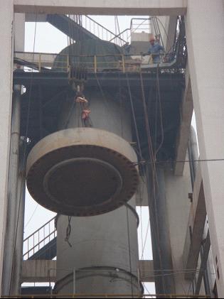 合成塔主體吊裝就位后,隨著外圍配管及塔內(nèi)觸媒填充結(jié)束,定于9月27日吊裝合成塔大蓋。當(dāng)日,天公頗不作美,秋風(fēng)瑟瑟,冷雨連連,給吊裝帶來了一定難度。分公司經(jīng)理李杰斌早早到達(dá)現(xiàn)場,與技術(shù)員、吊裝負(fù)責(zé)人最后核定技術(shù)參數(shù)和起吊方案。大蓋重50噸,采用卷揚(yáng)機(jī)提升法起吊至60米高的合成塔頂。整整一天,李杰斌冒雨堅(jiān)守在吊裝現(xiàn)場,仔細(xì)、認(rèn)真地察看吊裝動態(tài)。一秒不停的大雨將在場的施工人員淋得透濕。然而,惡劣的天氣阻擋不了大蓋的徐徐上升,下午五點(diǎn)合成塔大蓋順利就位。
