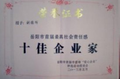 7月25日,岳陽市召開首屆學(xué)雷鋒“愛心100”企業(yè)暨最具社會責(zé)任感“雙十佳”表彰大會。會上,公司榮獲岳陽市首屆學(xué)雷鋒“愛心100”企業(yè)、岳陽市首屆最具社會責(zé)任感十佳企業(yè)提名獎榮譽稱號,公司黨委書記、董事長劉德輝獲“岳陽市首屆最具社會責(zé)任感十佳企業(yè)家”榮譽稱號。公司黨委副書記何玉文到會并參加了授獎儀式。