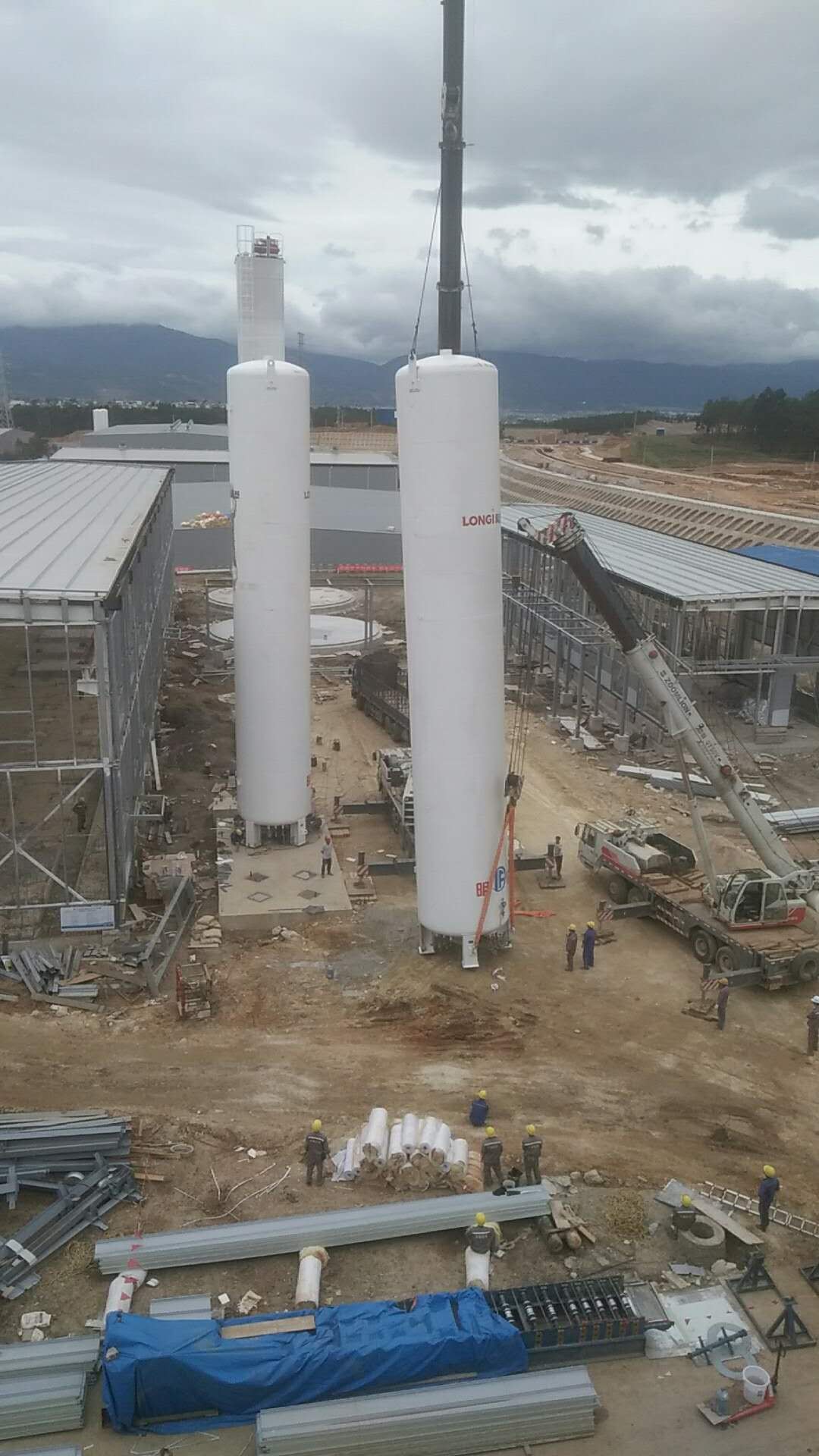 6月28日,華東分公司保山隆基硅業(yè)氬氣回收項目部順利吊裝就位1800NM3/H氬氣回收裝置液氬儲槽和冷箱設備,標志著該項目已經啟動安裝施工。