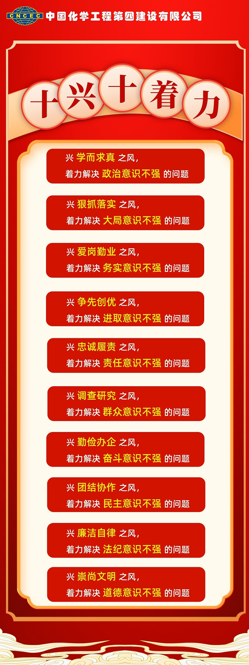 活動(dòng)通知中針對公司職工在工作中存在的思想、責(zé)任、作風(fēng)三個(gè)“不在線”問題,明確了作風(fēng)建設(shè)重點(diǎn)治理的總體目標(biāo),以支部為單位,組織開展“能力作風(fēng)建設(shè)”大討論,努力實(shí)現(xiàn)“十興十著力”目標(biāo)。從今天起,公司將對“十興十著力”目標(biāo)進(jìn)行深入解讀。