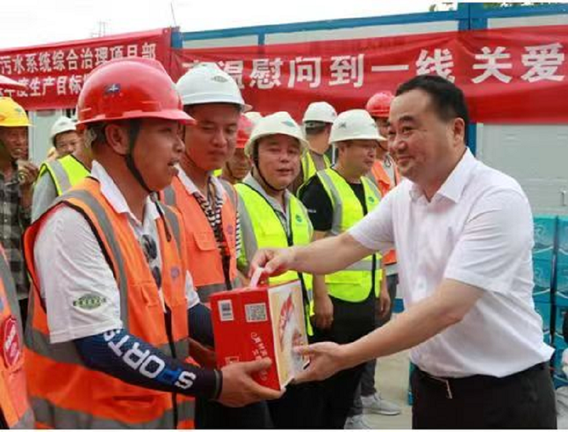 7月20日,岳陽市云溪區(qū)委書記劉正仁來公司岳陽市中心城區(qū)污水系統(tǒng)綜合治理項(xiàng)目看望慰問高溫期間堅守一線的員工。區(qū)委副書記、宣傳部長趙婷,區(qū)委常委、區(qū)委辦主任劉慶雄,區(qū)人大常委會副主任曹顯良,區(qū)工會、區(qū)住建局相關(guān)負(fù)責(zé)人;項(xiàng)目臨時黨支部、工會負(fù)責(zé)人等陪同。