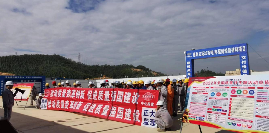 日前,華南公司惠州立拓項目開展以“推動質(zhì)量變革創(chuàng)新、促進(jìn)質(zhì)量強(qiáng)國建設(shè)”為主題的2022年“質(zhì)量月”活動啟動儀式。