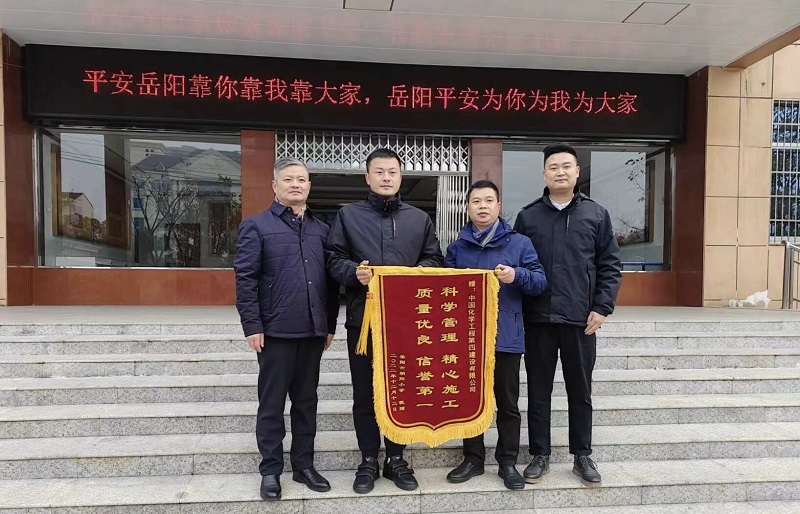 岳陽(yáng)市政府機(jī)關(guān)事務(wù)管理中心、市朝陽(yáng)小學(xué)到岳陽(yáng)污水治理項(xiàng)目部贈(zèng)送錦旗致謝函