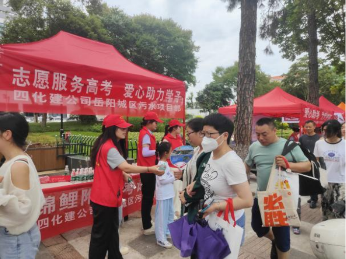 為更好地服務(wù)廣大高考考生及家長(zhǎng),項(xiàng)目部志愿者們專門在岳陽市第十四中學(xué)高考考點(diǎn)附近搭建遮陽棚,設(shè)置愛心服務(wù)點(diǎn),為考生提供礦泉水、防蚊避暑用品和基礎(chǔ)醫(yī)藥器材等助考物品,并自發(fā)組建黨員先鋒車隊(duì)、工人先鋒車隊(duì)、青年先鋒車隊(duì)、現(xiàn)場(chǎng)服務(wù)隊(duì)協(xié)助進(jìn)行愛心送考、文明交通勸導(dǎo)等志愿服務(wù)。