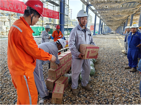近日,湛江一體化項(xiàng)目部開展“情系一線送清涼、安全生產(chǎn)保安康”慰問活動(dòng),為一線勞動(dòng)者送上了酸梅湯、藿香正氣水等防暑降溫物品,向他們的辛勤付出表示感謝,并叮囑大家要?jiǎng)谝萁Y(jié)合,在作業(yè)過程中采取有效的防暑降溫措施,確保暑期各項(xiàng)作業(yè)安全有序高質(zhì)量進(jìn)行。