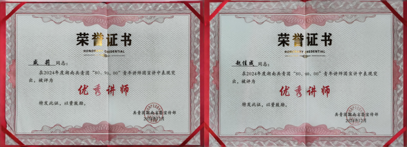 近日,共青團(tuán)湖南省委召開“理 XIANG 青年”新時(shí)代湖湘青年理論學(xué)習(xí)年度示范宣講會(huì)。會(huì)上,公司青年盛莉、趙佳成榮獲“湖南省2024年度優(yōu)秀講師”稱號(hào)。