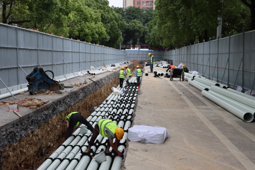 近日,由岳陽(yáng)市中心城區(qū)污水系統(tǒng)綜合治理項(xiàng)目部承建的岳陽(yáng)大道城市排水排污新建管涵工程四化建變電力排管工程開(kāi)工。