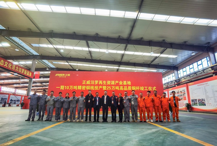 最后,由謝衛(wèi)江宣布正威汨羅再生資源產(chǎn)業(yè)基地項(xiàng)目一期10萬噸精密銅線投產(chǎn)暨25萬噸銅基新材料竣工。
