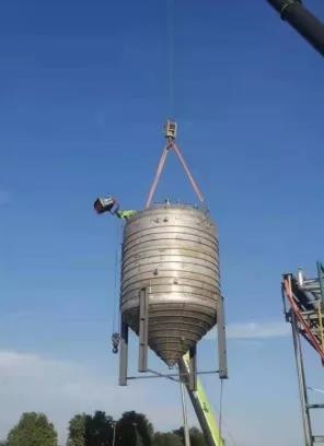 據(jù)悉,該分離水儲(chǔ)罐高7.5米、直徑4.4米,共有2臺(tái),是項(xiàng)目首項(xiàng)設(shè)備吊裝。由于現(xiàn)場(chǎng)安裝環(huán)境復(fù)雜、就位難度大,使得儲(chǔ)罐吊裝難度高。為確保此次吊裝工作順利完成,項(xiàng)目部多次組織召開(kāi)協(xié)調(diào)會(huì),從吊裝方案設(shè)計(jì)、吊車(chē)選型、到貨設(shè)備的實(shí)際數(shù)據(jù)測(cè)量,都做了周密計(jì)劃與準(zhǔn)備。11月13日上午,經(jīng)過(guò)3個(gè)小時(shí)的緊張施工,分離水儲(chǔ)罐設(shè)備吊裝就位工作順利完成。