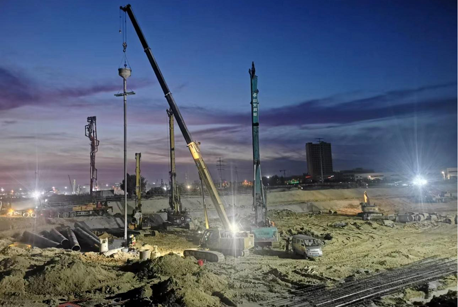 目前,項目A、B、D三個地塊已全面進入大干階段,現(xiàn)場投入鉆機14臺,保證每天完成樁基180根?,F(xiàn)已完成樁基1769根,占三個地塊5453根樁基的32%,計劃9月13日前完成三個片區(qū)全部樁基施工和基坑支護工作,屆時項目將全面進入基礎(chǔ)施工階段。