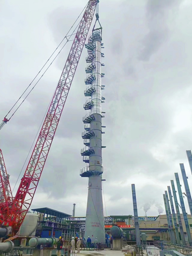 該脫輕塔上塔直徑3米、高65米、重量158噸,是1-丁烯裝置的核心設(shè)備,也是工程中最高最重的立式設(shè)備。為確保此次吊裝順利完成,項目部克服工期緊張、工序復(fù)雜等諸多不利因素影響,精心編制了吊裝專項施工方案,對吊裝人員進行安全、技術(shù)、質(zhì)量等方面的交底工作,確保項目“開年第一吊”的順利完成。(通訊員 孫善義)