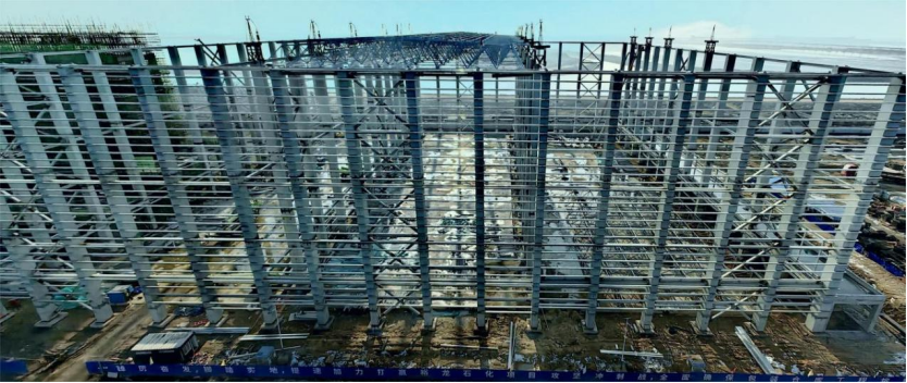 山東裕龍石化項(xiàng)目完成儲運(yùn)立體倉庫網(wǎng)架結(jié)構(gòu)整體安裝
