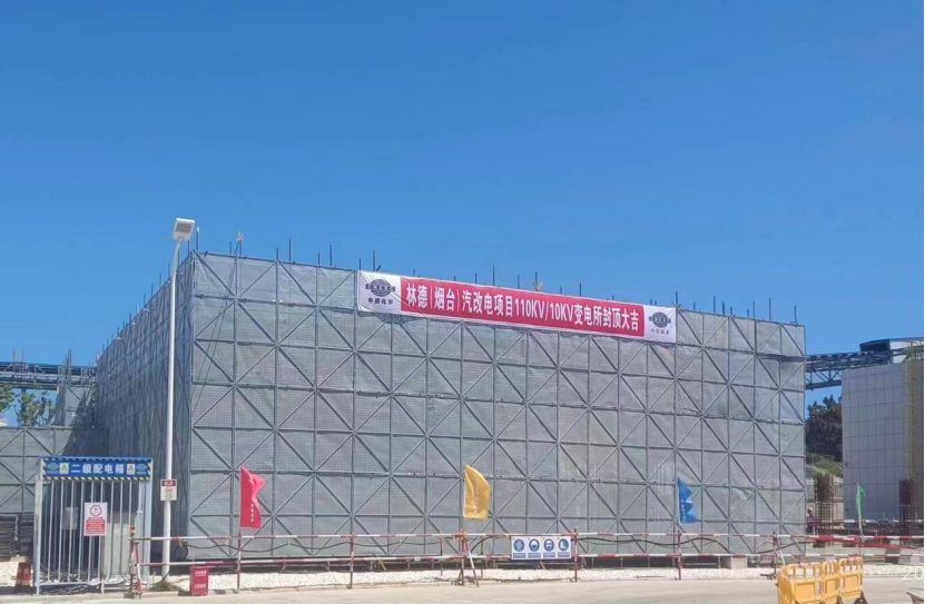 華東公司林德(煙臺)汽改電項目110KV/10KV變電所封頂