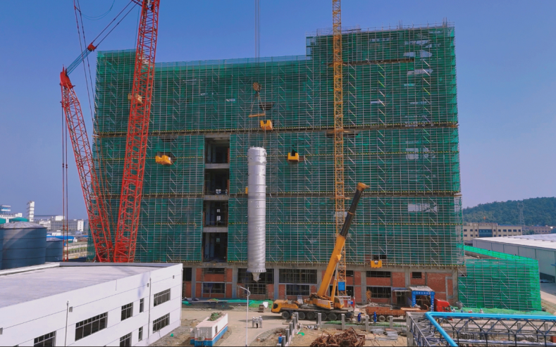 中化勞務(wù)公司岳化新材料項目完成大型設(shè)備吊裝
