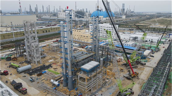 華南公司揭陽東粵化學(xué)項(xiàng)目成功吊裝首批大型塔器