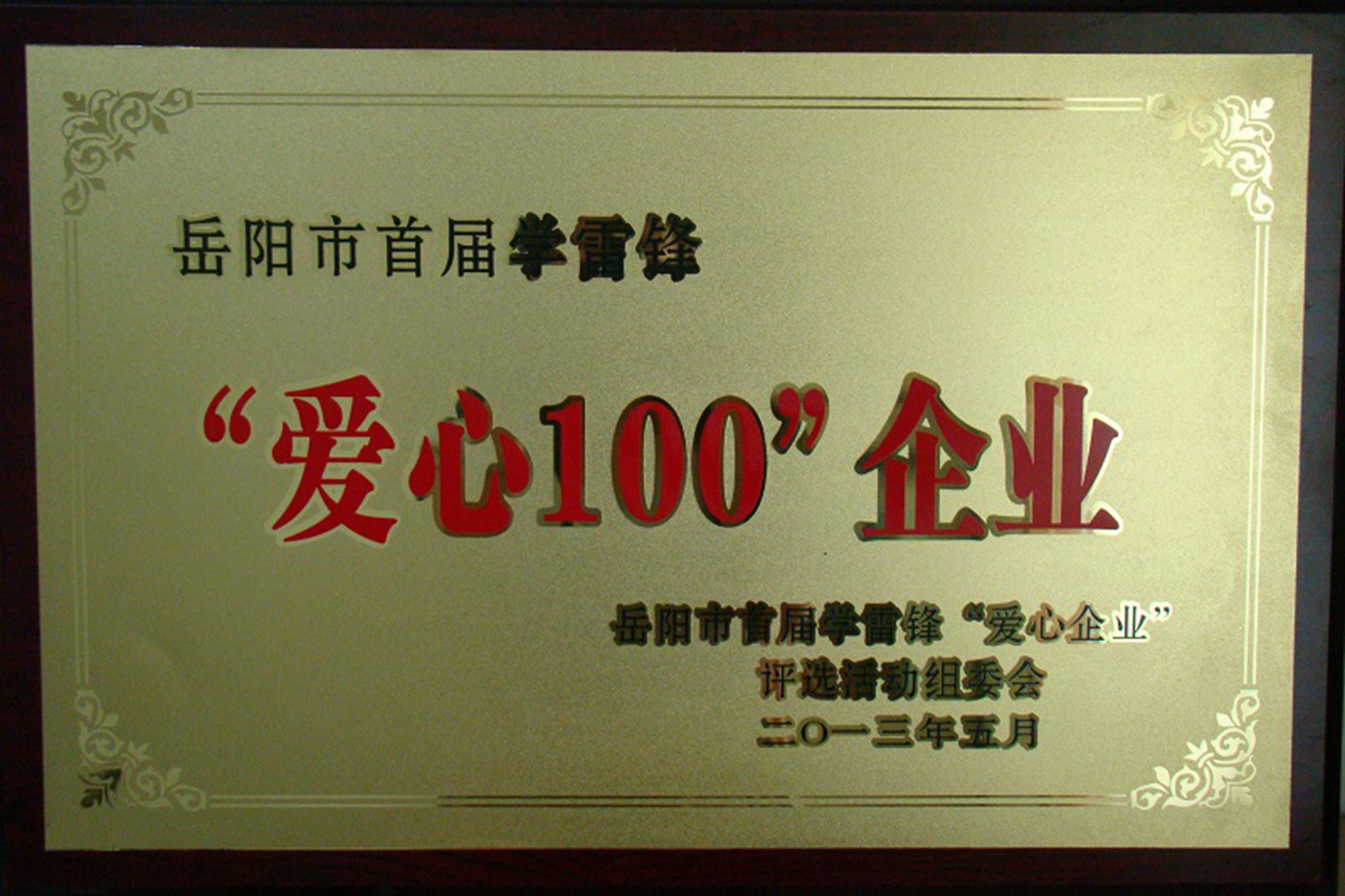公司被評為岳陽市首屆學雷鋒“愛心100”企業(yè)